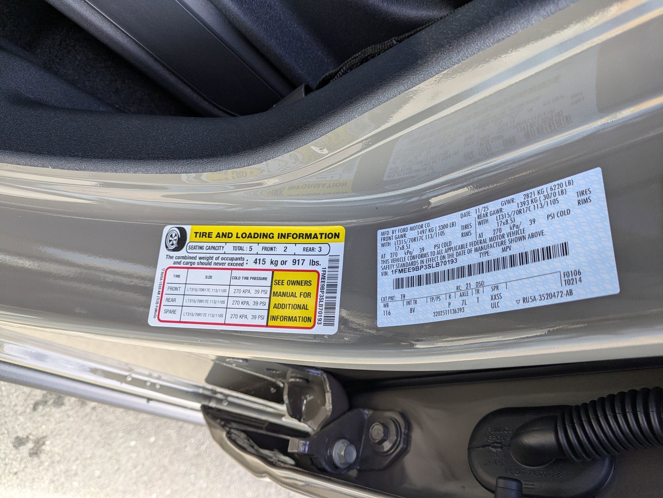 - Tires: LT285/70R17 A/T -inc: full size spare tire w/TPMS