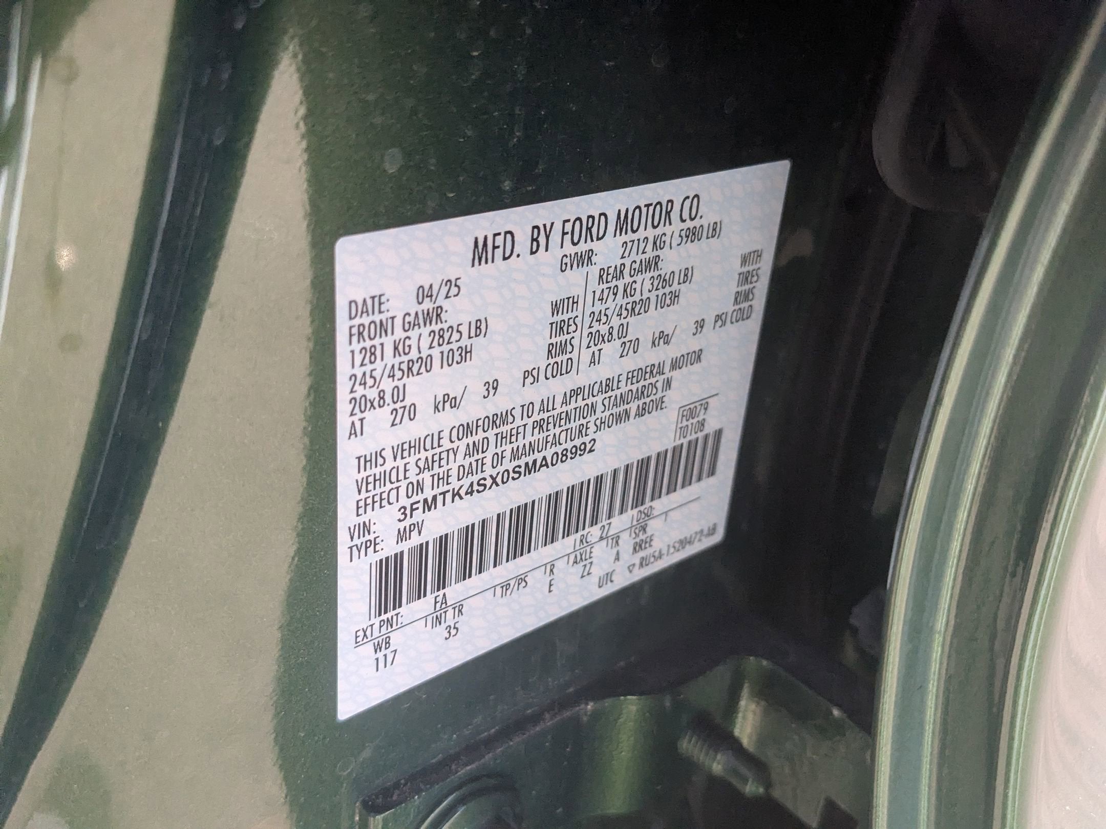 - Vehicle Name: Ford Mustang Mach-E
