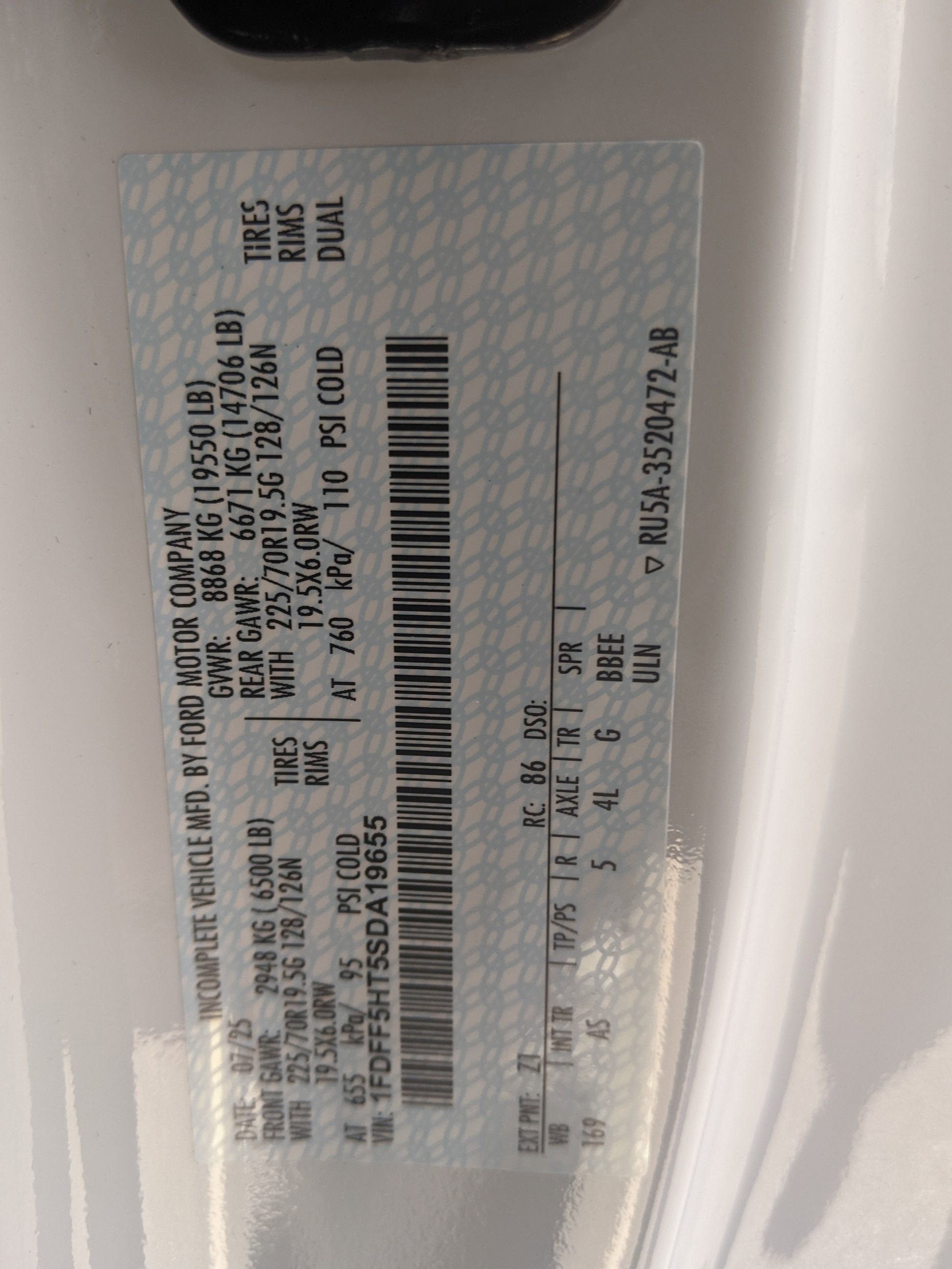 - Rear Tire Size: LT225/70SR19.5