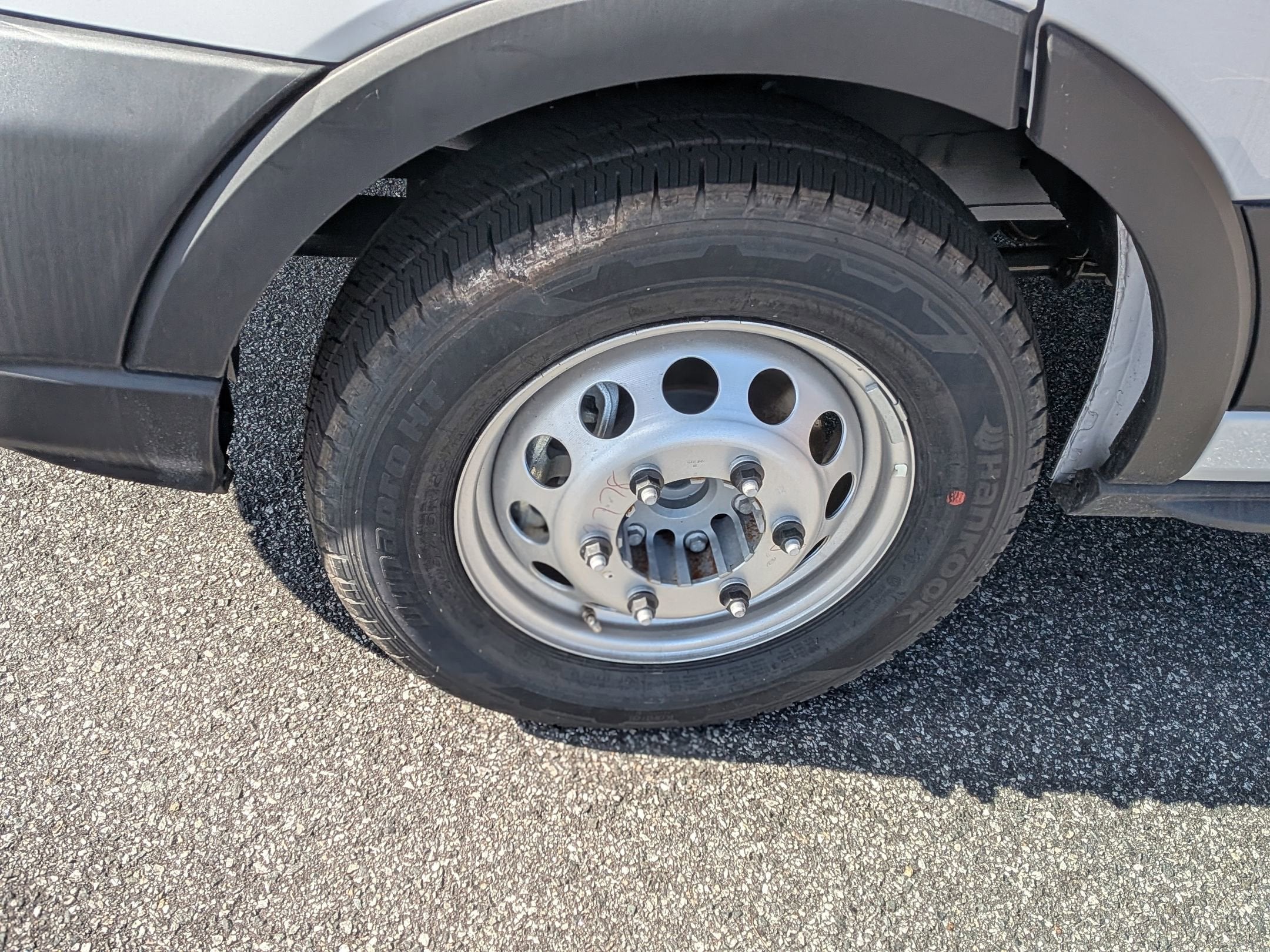 - Wheels: 16" Heavy-Duty Silver Steel -inc: silver hubcaps and exposed lug nuts, The center ornament only comes on the front wheels and not on the rear wheels