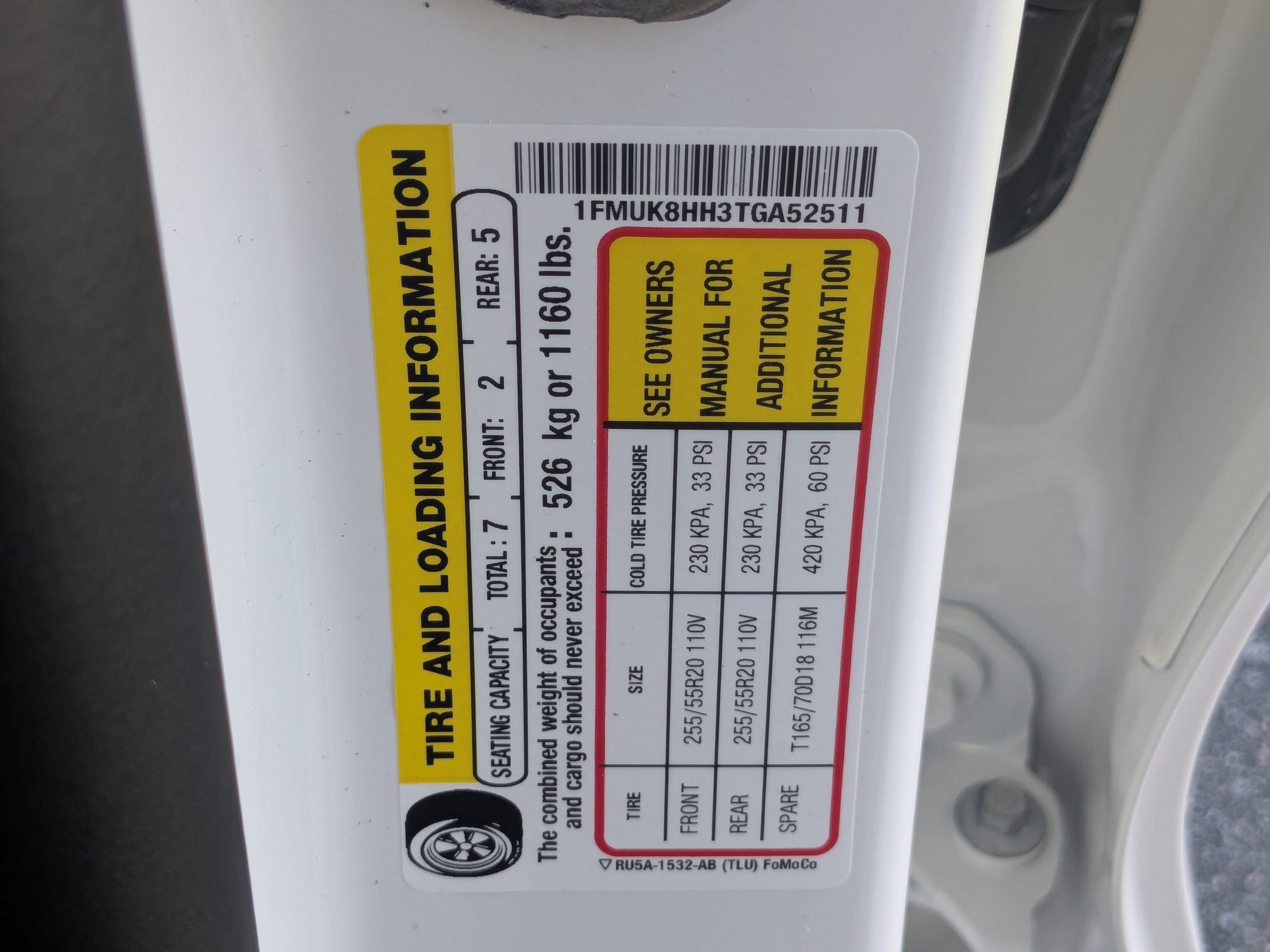 - Front Tire Size: P255/55VR20