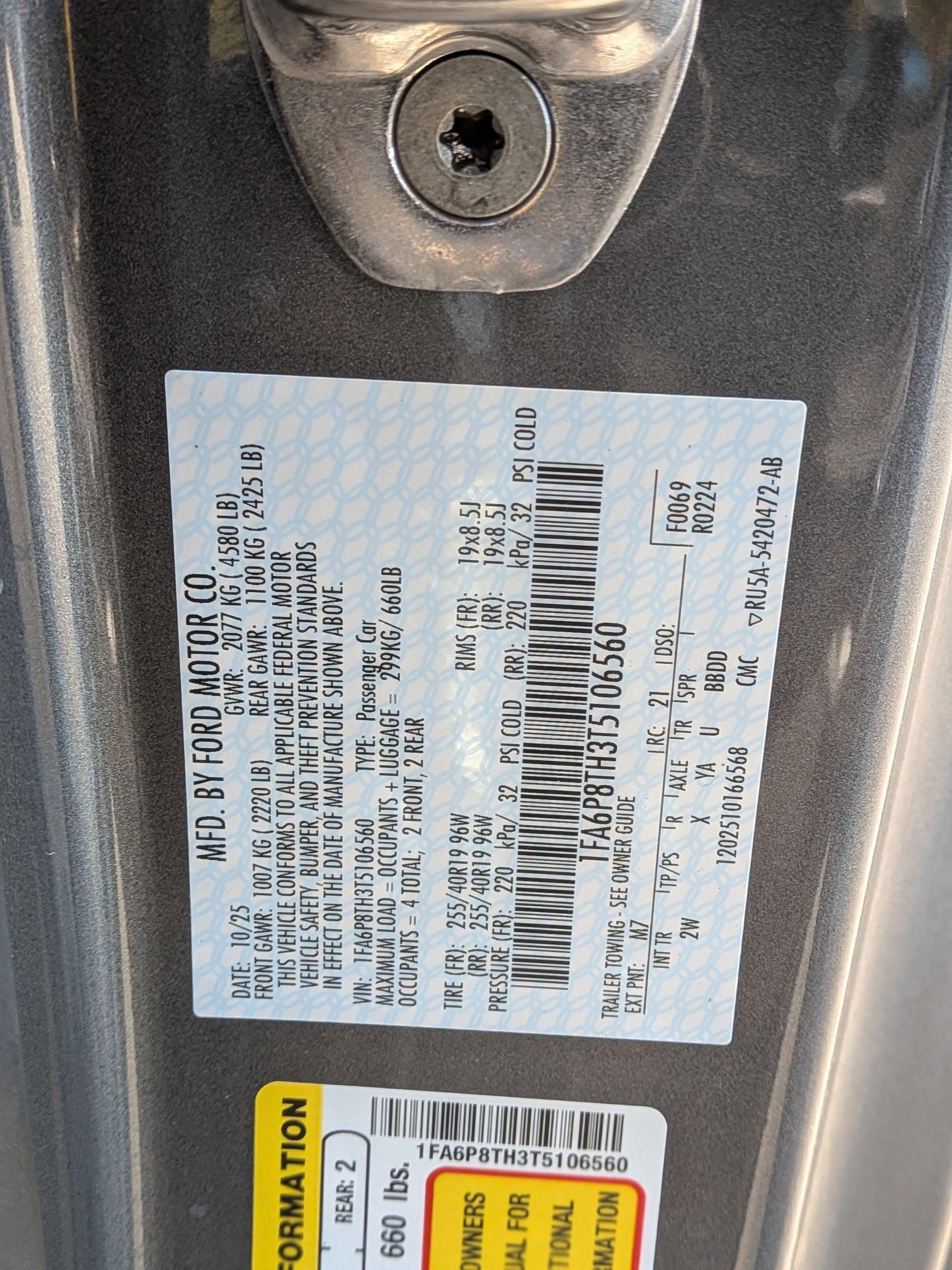 - Vehicle Name: Ford Mustang