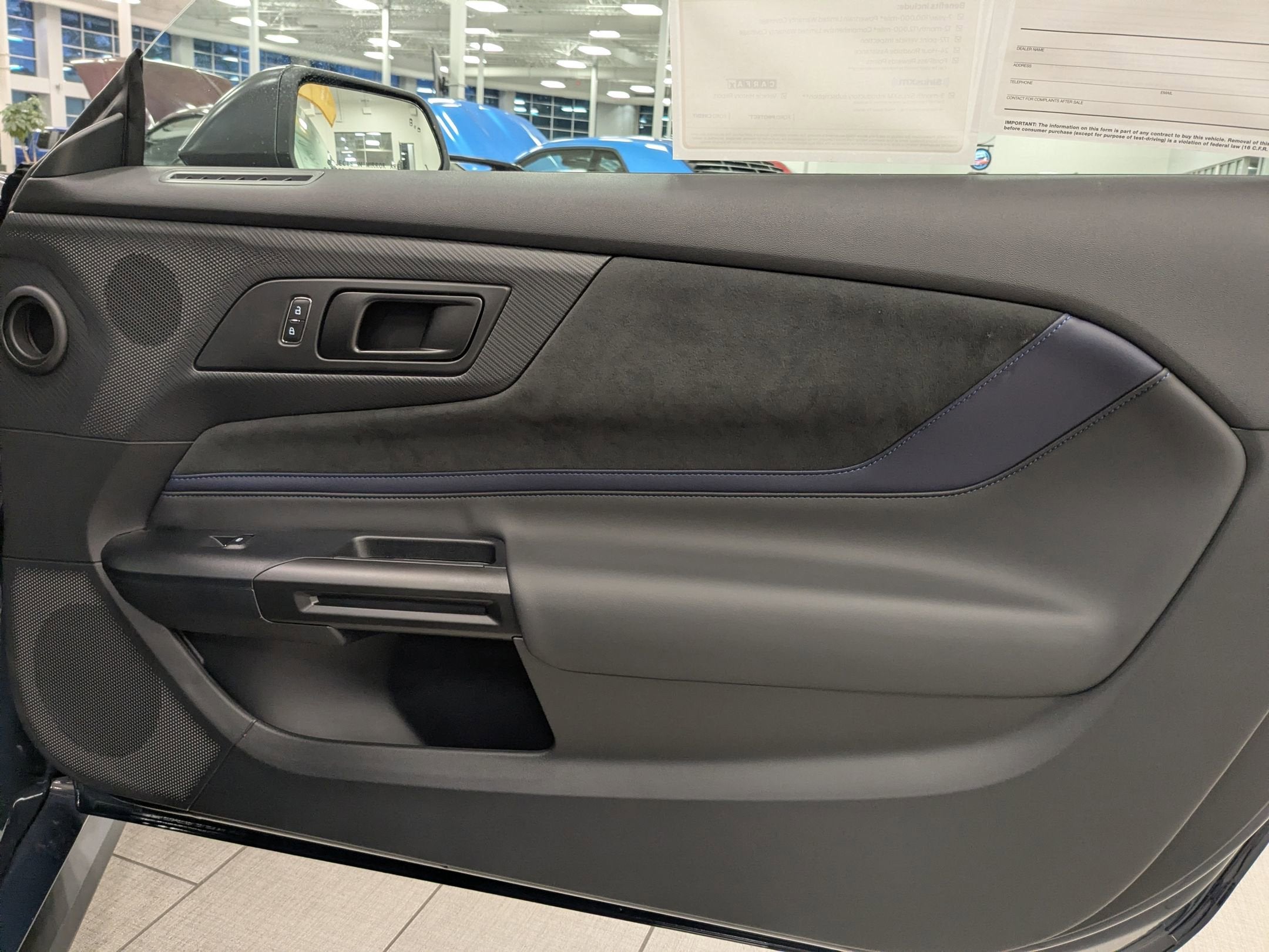 Dinamica Interior: Premium Black/Blue Dinamica cloth and vinyl seating with color accents.